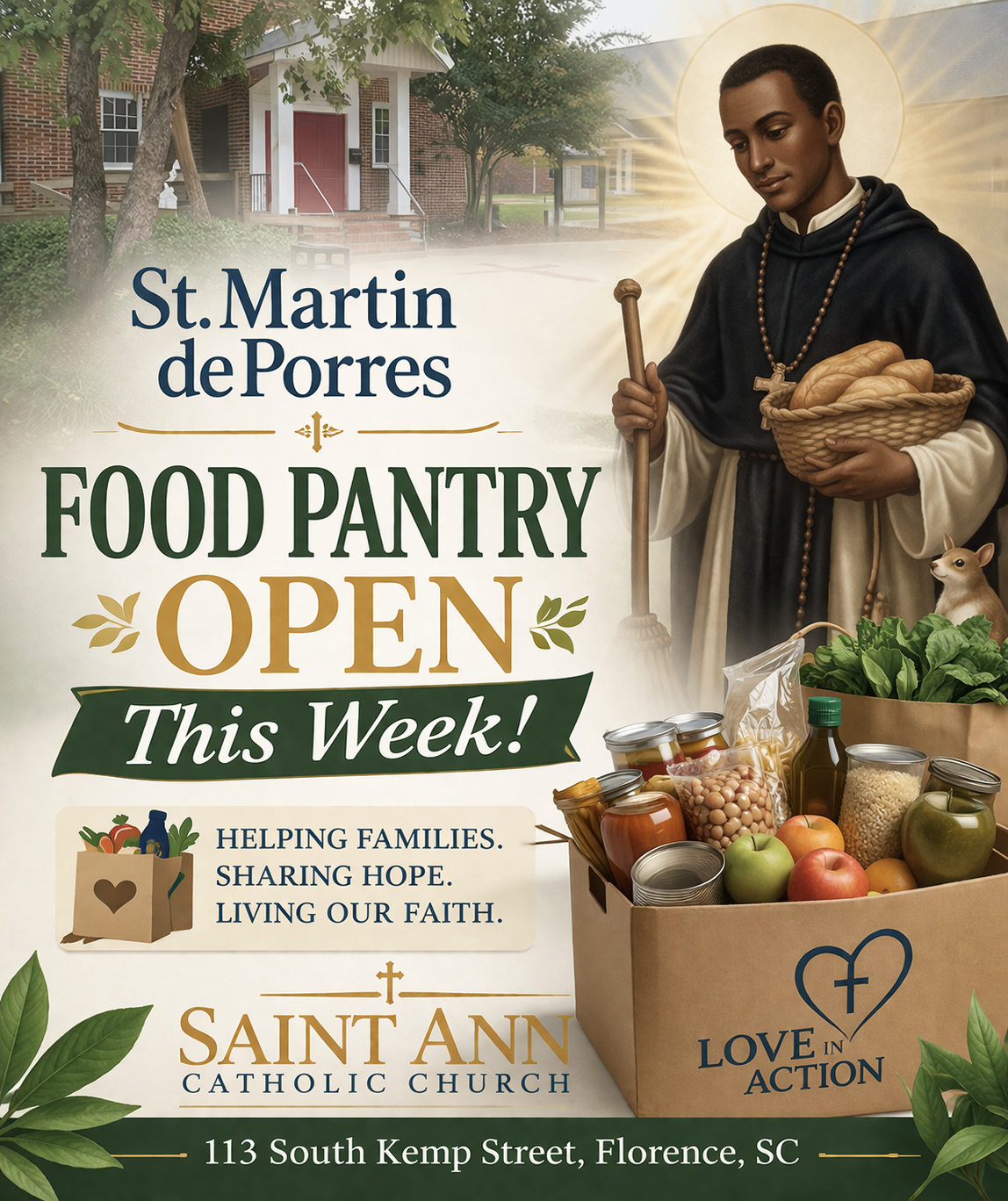 St. Martin dePorres Food Pantry is one of the many out reach programs supported by the families of St. Ann Parish in Florence, SC.